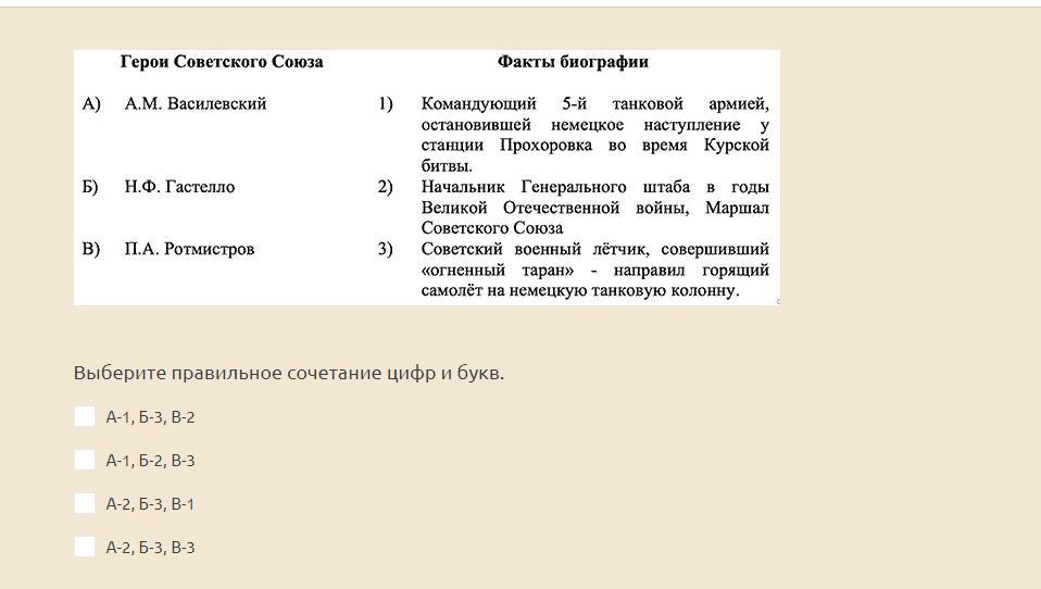 Установите соответствие между Героями Советского Союза и фактами их биографии: к позиции первого столбца подберите соответствующую позицию из второго столбца.