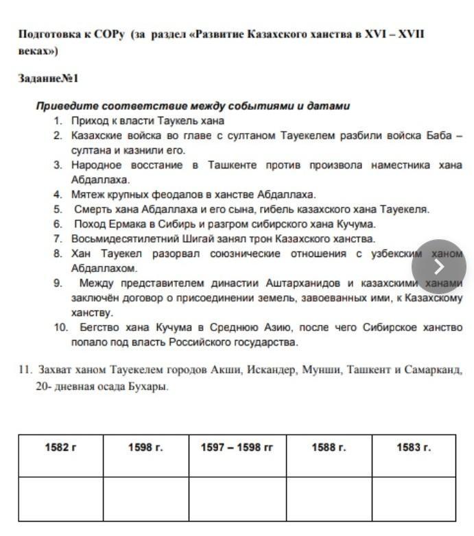 Захват ханом Тауекелем городов Акши, Искандер, Мунши, Ташкент и Самарканд 10. В 1598 году