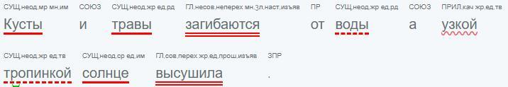 словосочетание в предложении кусты и травы загибаются от воды а узкой тропинкой солнце высушала т подчеркнуть члены предложения и поставить часть речи
