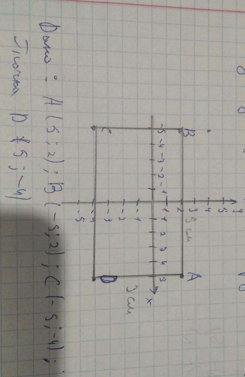 Дано три вершини прямокутника (5;2), (-5;2),(-5,-4) знайди координати четвертох вершини. Обчислитти площу і периметр прямокутника.