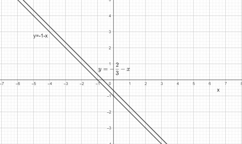 Так как угловые коэффициенты равны и , то графики параллельны и тогда система не имеет решения. Покажем это графически.