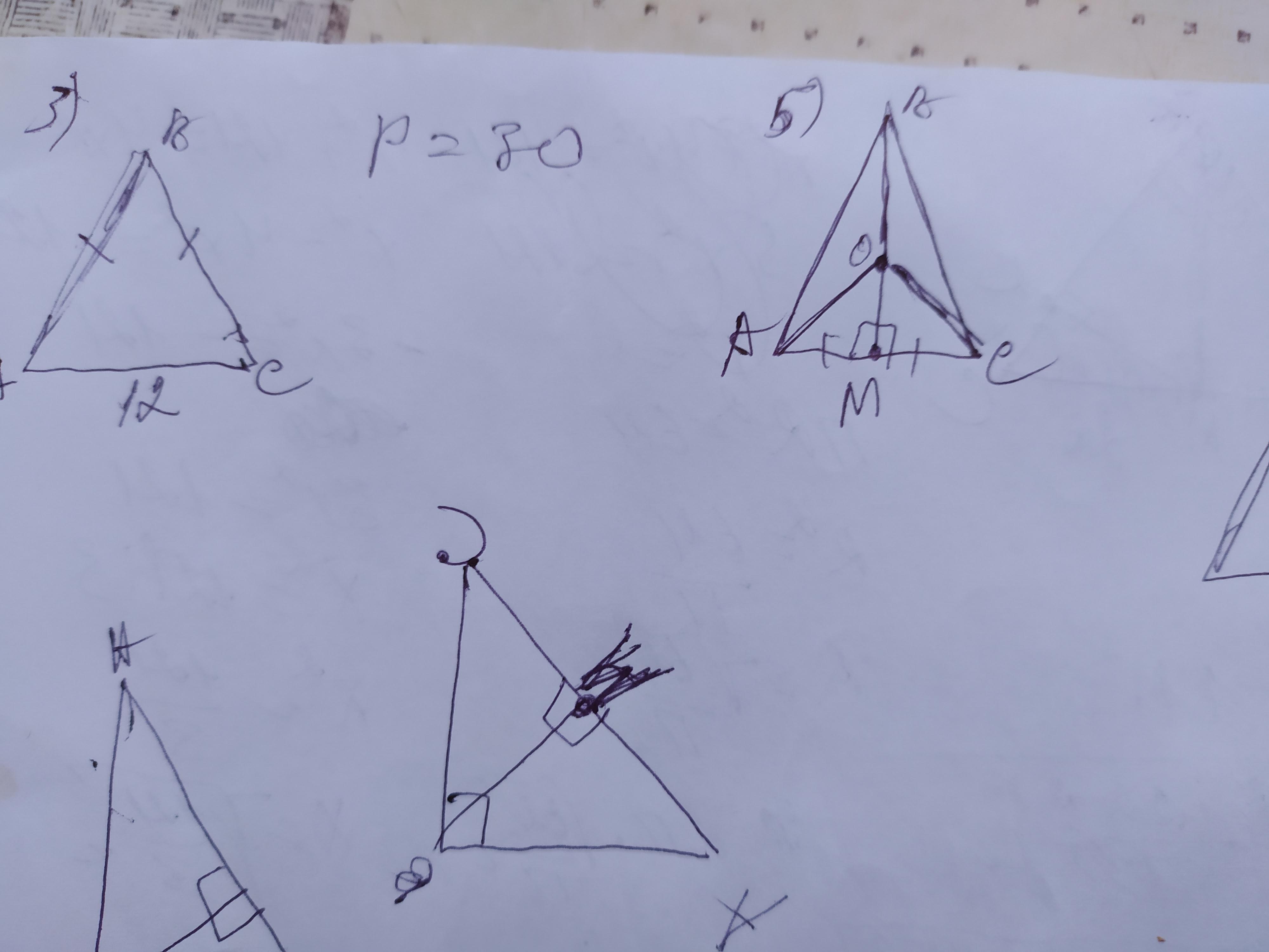 5. В равнобедренном треугольнике АВС с основанием АС проведена медиана ВМ. На ней взята точка О. Докажите равенство треугольников АВО и СВО. Сделать чертеж.