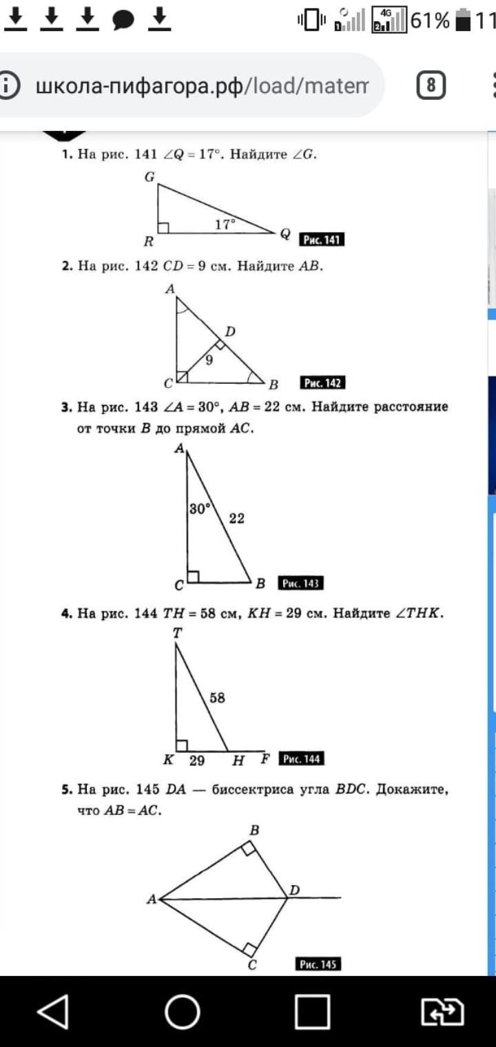 1) 73; 2) 18; 3) 11; 4) 60; 5) По условию AD общее основание, а Угол