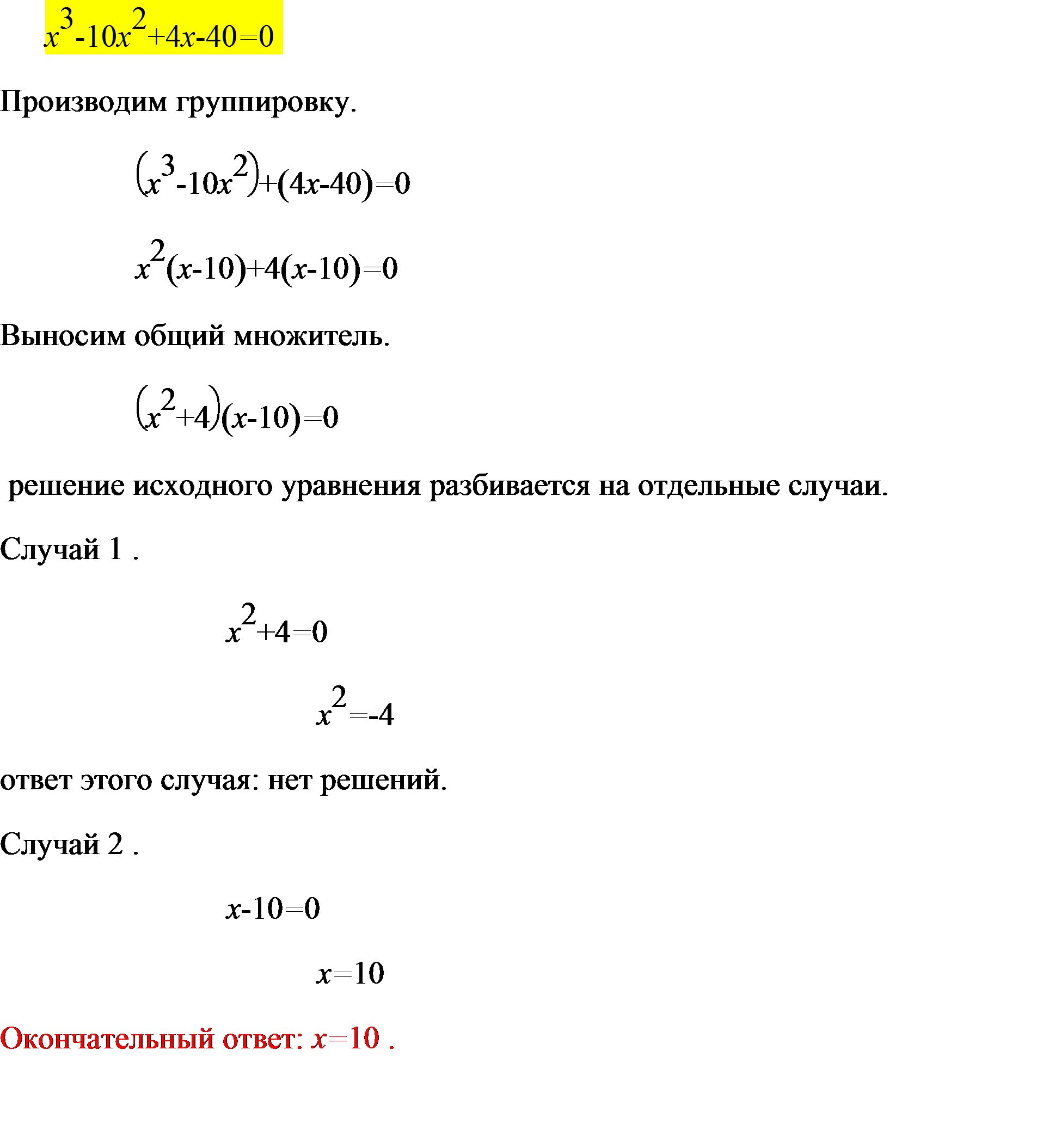 х³+8х²-4х²-32х=0 х²(х-10)+4(х-10)=0