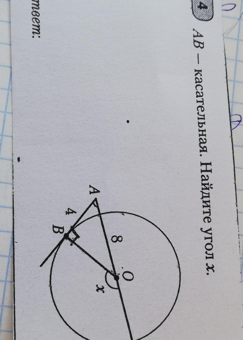 4/8=1/2 следует угол АОВ= 30 градусов (по синусу)