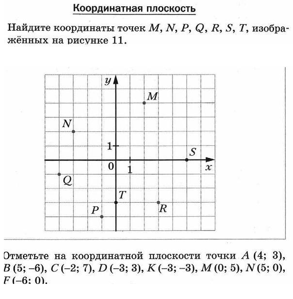 M (2;4), N (-3;2), P (-1;-4), Q (-4;-1), R (3;-3), S(5;0), T (0;-3)