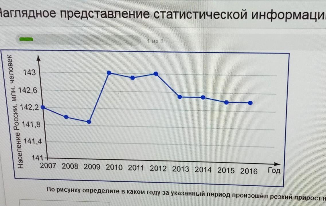 По рисунку определите в каком году за указанный период произошел резкий прирост населения России: