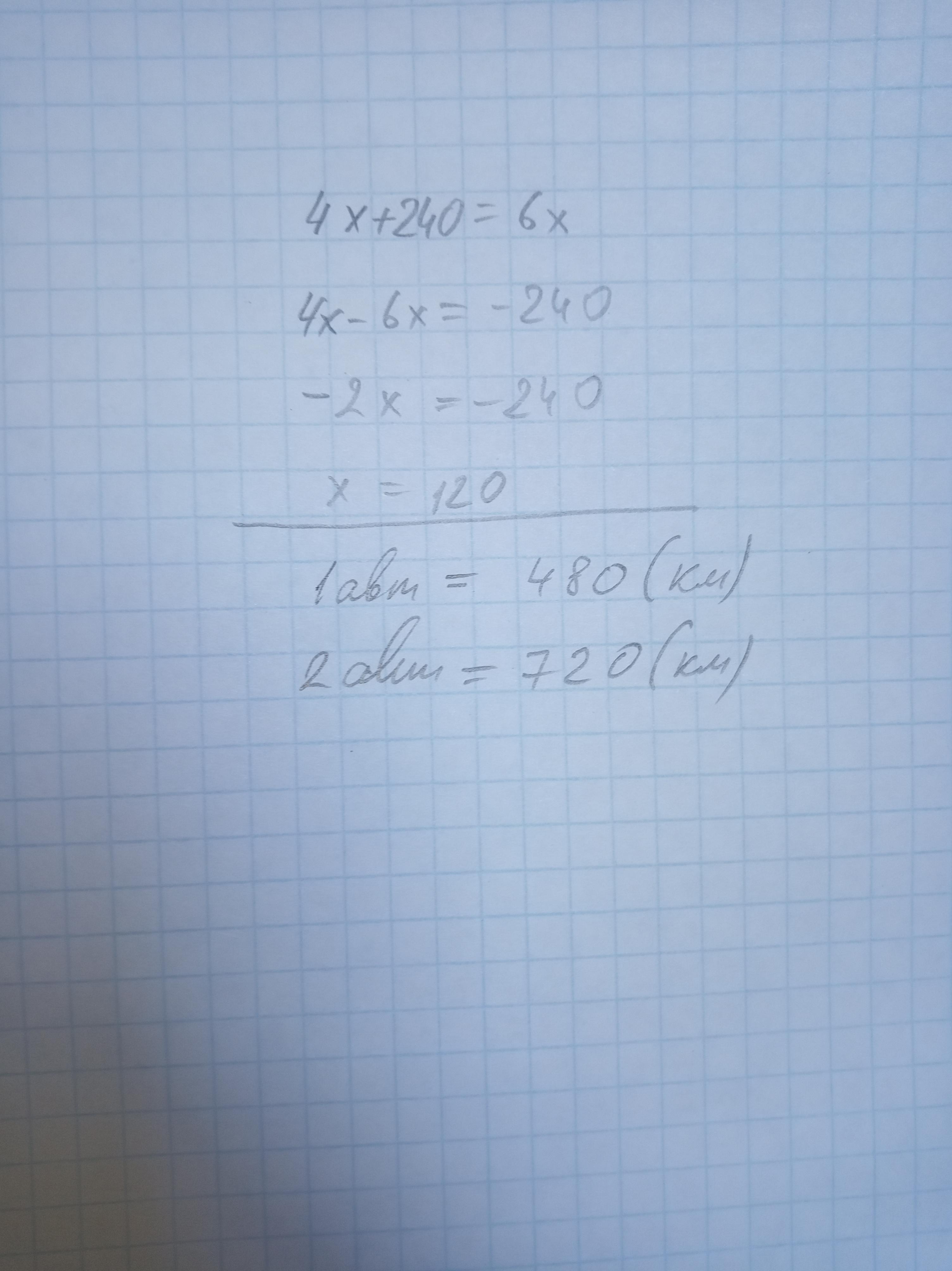 Ответ: 1 авто. 480 км.; 2 авто. 720 км