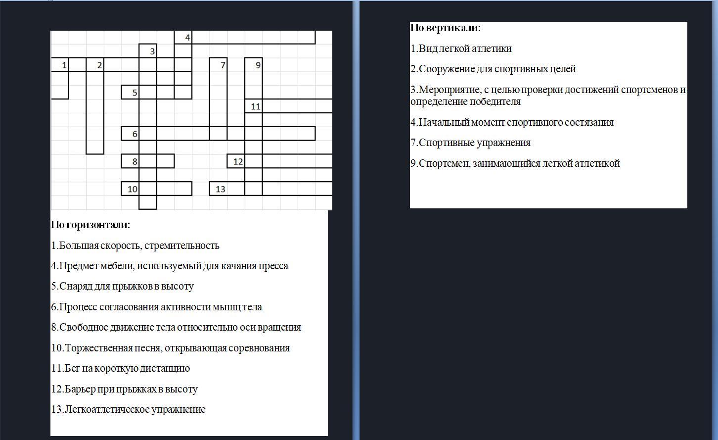 По вертикали:1.Вид легкой атлетики