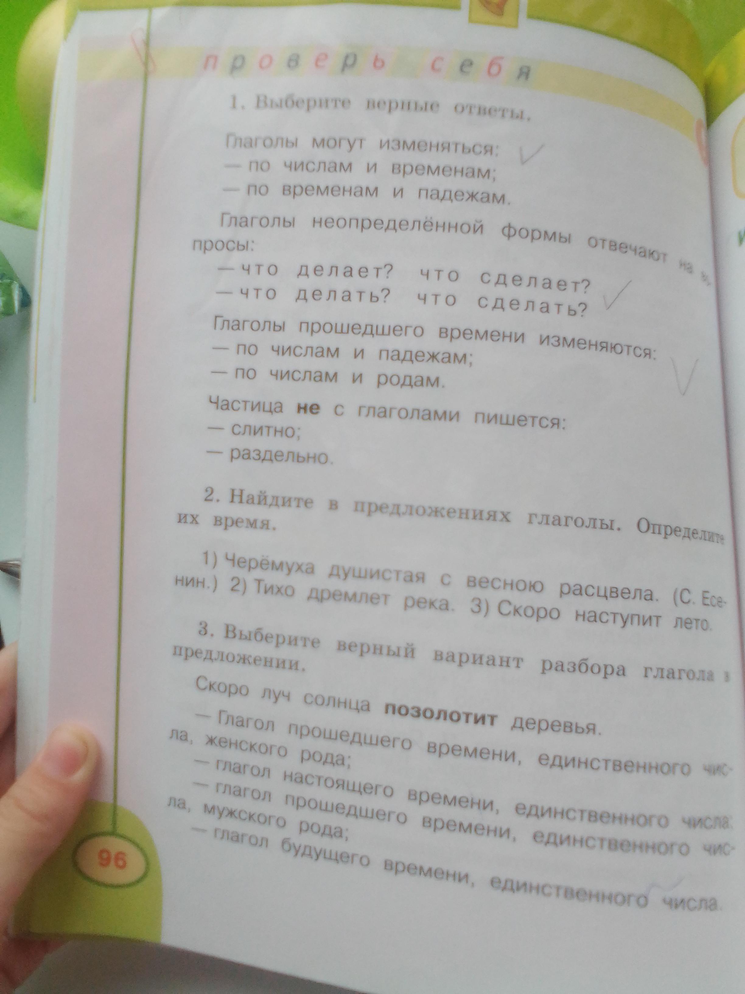 Глаголы неопределённой формы отвечает на вопросы: что что делает? что сделает? Глаголы прошедшего времени изменяются: по числам и падежам по числам и родам. Частица не с глаголами пишется: слитно: раздельно.