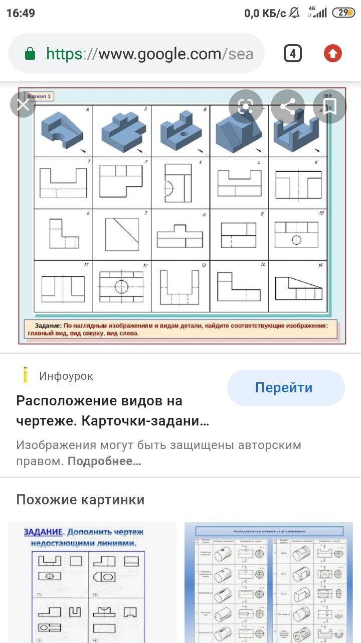 По наглядным изображениям и видам детали,найдите соответствующие изображения:главный вид, вид сверху,вид слева. Вариант 1