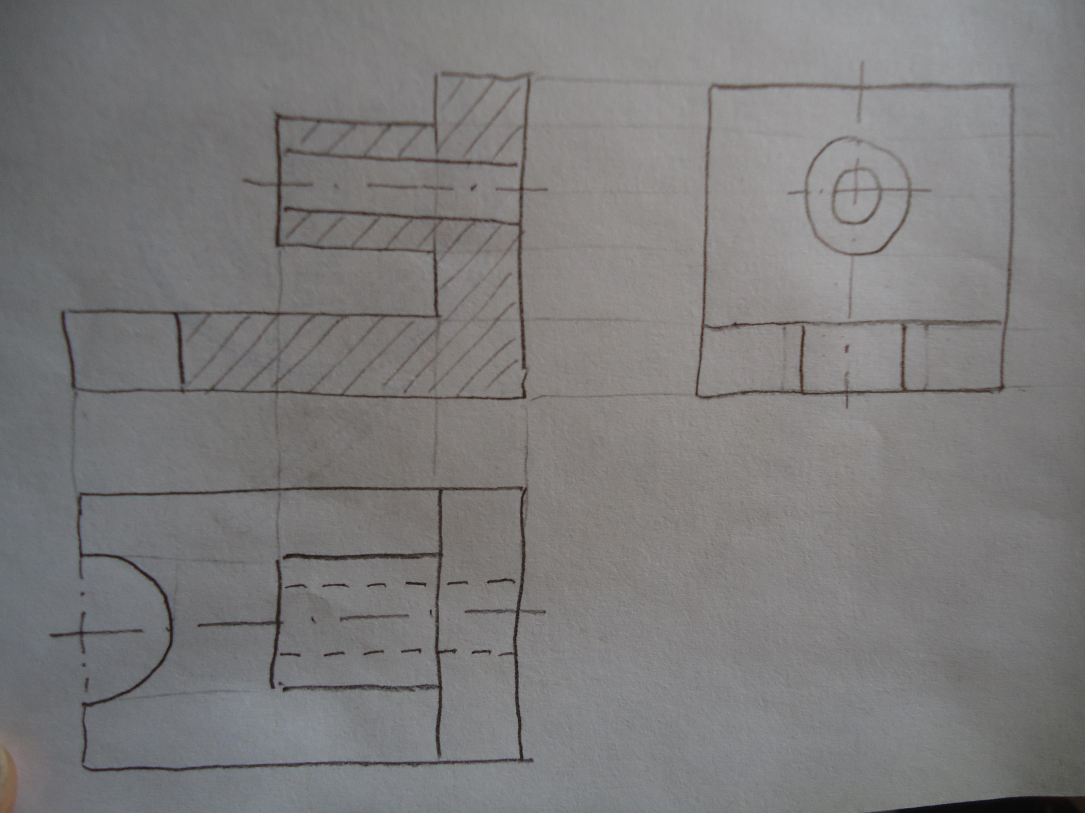 Вам необходимо выполнять эскиз на клетчатой бумаге и тоже от руки, с сохранением пропорций на глаз, а размеры проставить те, что указаны на аксонометрии детали.