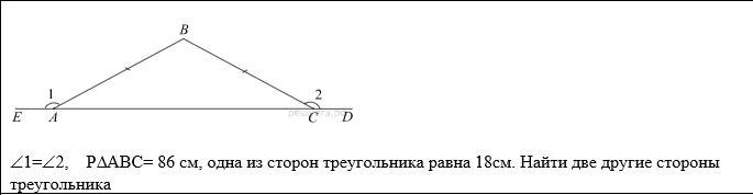 Объяснение: Якщо кут 1 =куту 2 то трикутник АВС рувнобедрений. Бічна сторона має бути більша за основу з цього маємо ,що основа =18 см.
