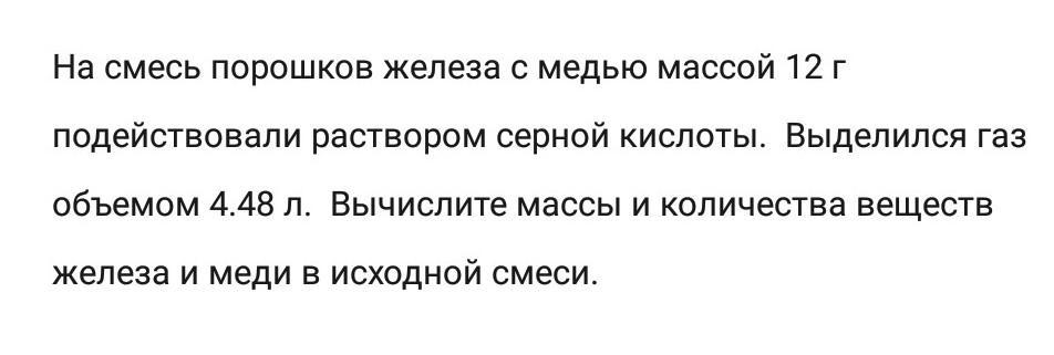 m(Cu) = m(смеси) - m(Fe) = 12г. - 11,2 г. = 0,8г.✔️