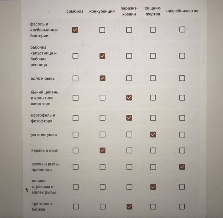 УСТАНОВИТЕ СООТВЕТСТВИЕ МЕЖДУ ПАРОЙ ОРГАНИЗМОВ И ТИПОМ БИОЛОГИЧЕСКИХ ОТНОШЕНИЙ, В КОТОРЫЕ ОНИ ВСТУПАЮТ