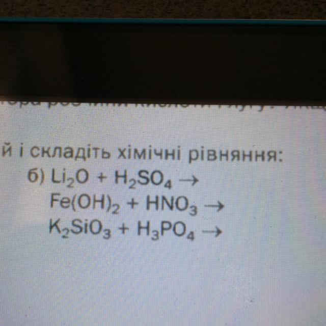 (Б, останнє завдання)Допишіть схеми реакцій та складіть хімічні рівняння K2 SiO3+ H3PO4=