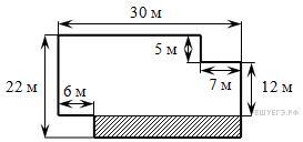 Найдем периметр участка: 12 + 7 + 5 + (30 − 7) + (12 + 5) + 6 + (22 − 5 − 12) + (30 − 6) + (22 − 12 − 5) = 104 м.