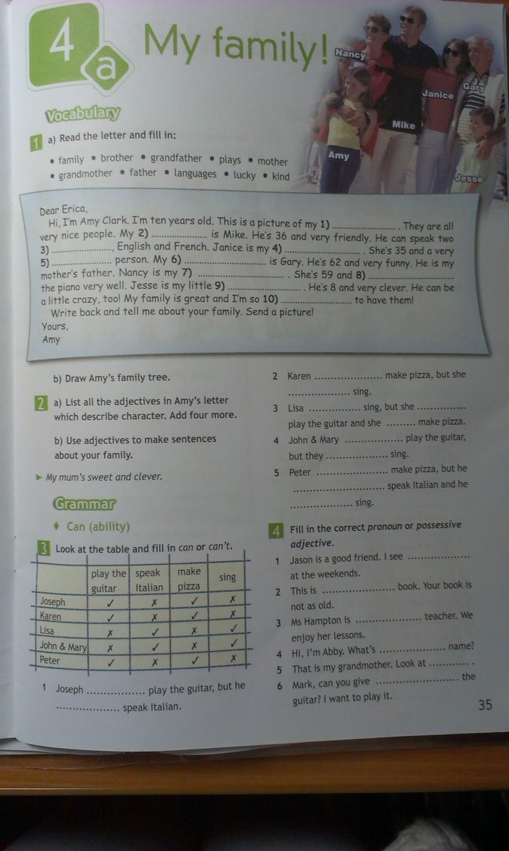 3.использовать прилагательные, чтобы сделать предложения о своей семье