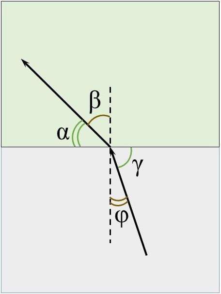 Укажи, какой из углов на рисунке является углом преломления. угол преломления на рисунке обозначен буквой