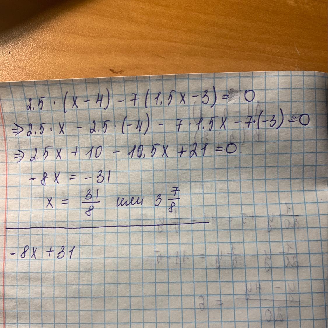 Решение на фото. Я не очень поняла, если задание решить уравнение (то в конце должно быть равно 0) тогда ответ 3 целых 7/8