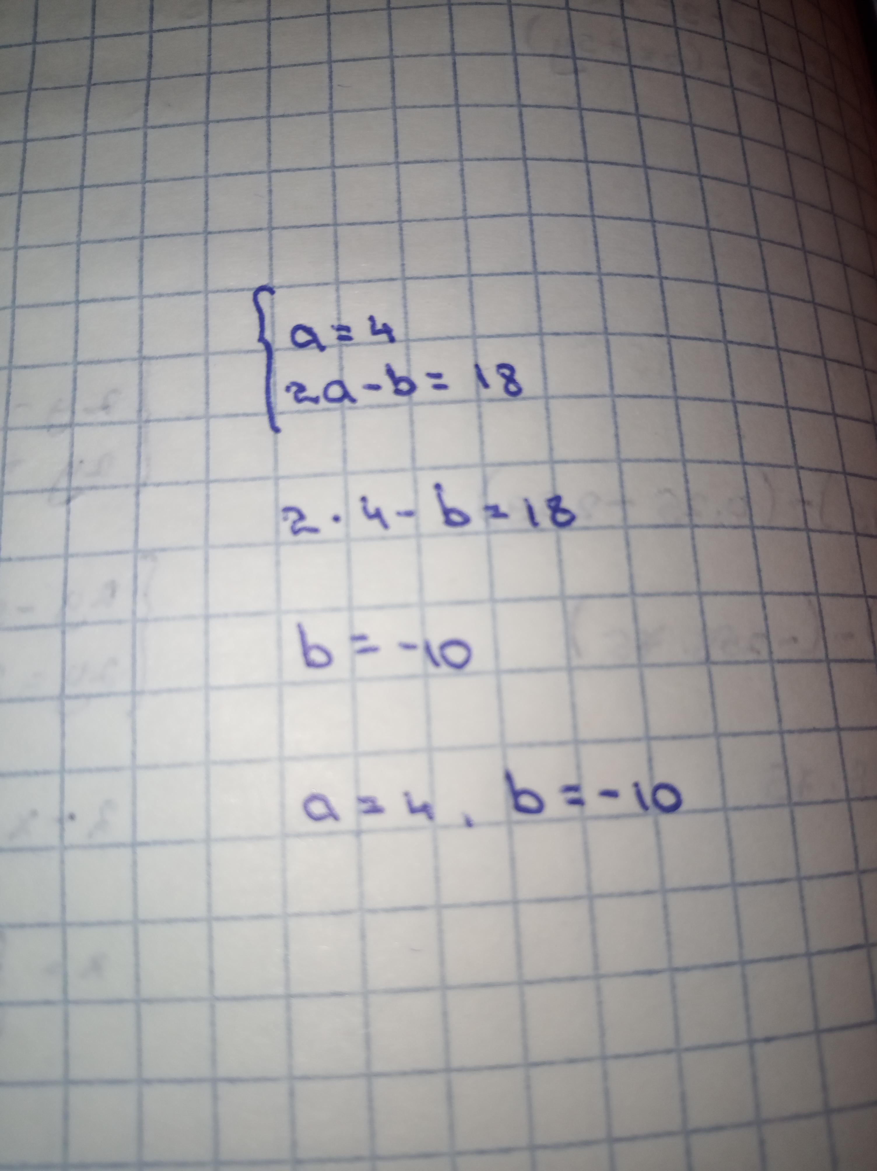 8-b=18;. a=4(по условиям системы )