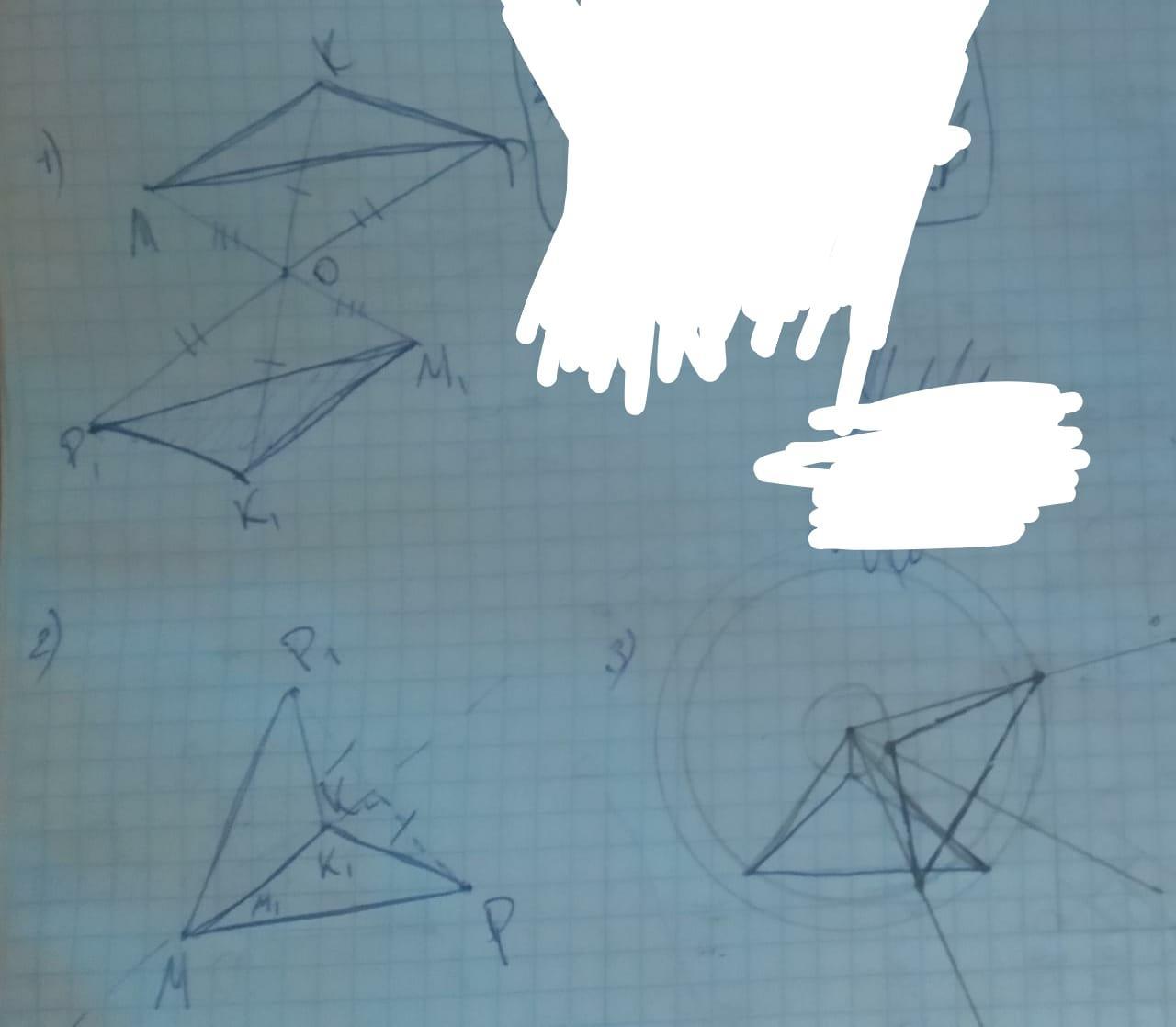 4. Построить образ тупоугольного треугольника МКР при : 1) симметрии относительно точки О; 2) симметрии относительно прямой, содержащей сторону МК; 3) повороте на 600 относительно точки О против часовой стрелки. 60 БАЛЛОВ ДАЮ