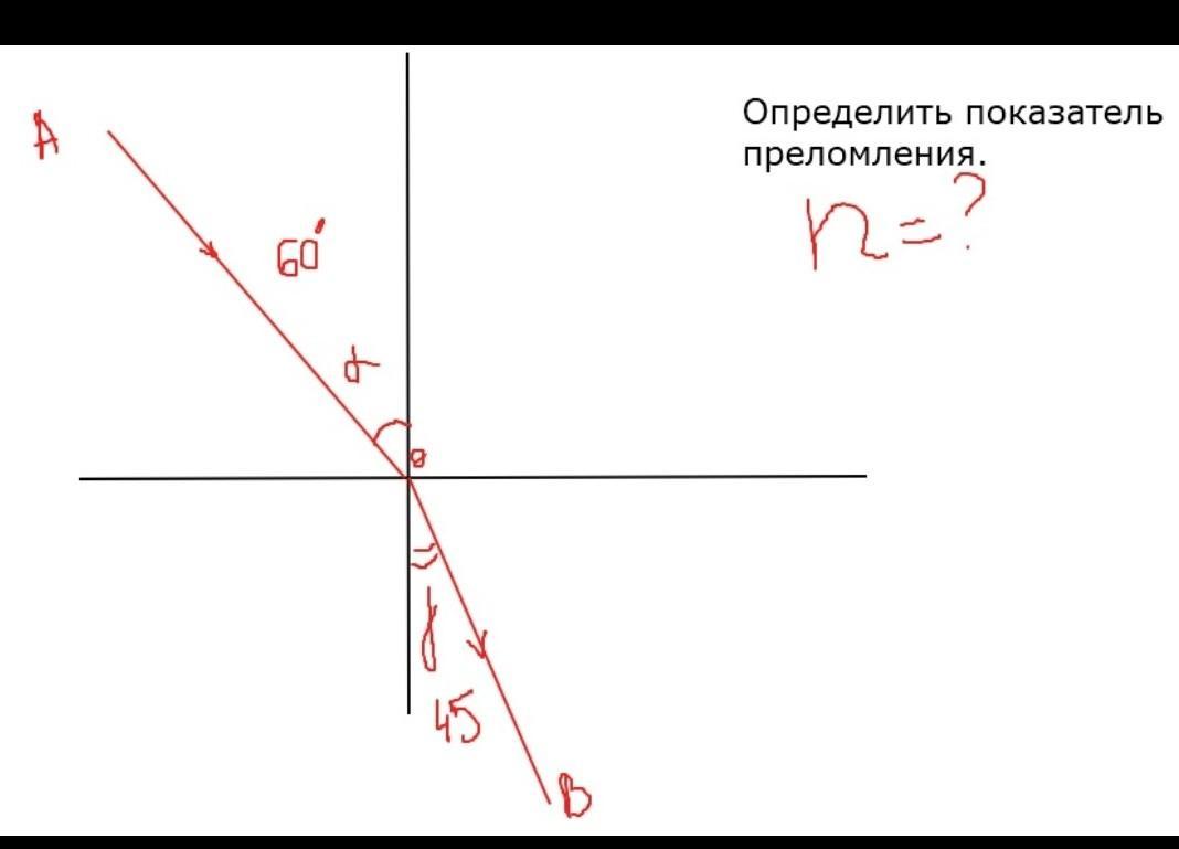 нужно найти отношение синусов этих углов: n = sin60°/sin45° = √3/2:√2/2 = √1,5 = 1,2.