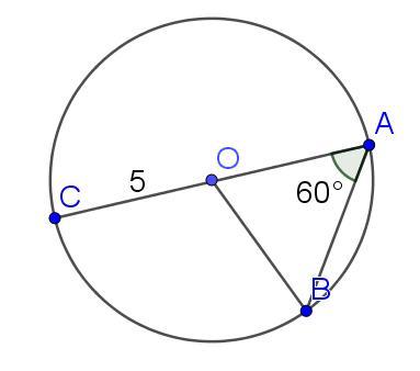 ОА=ОВ как радиусы окружности; значит : ∠А=∠В=60°; ∠О=180-60-60=60°. (в треугольнике ОАВ).