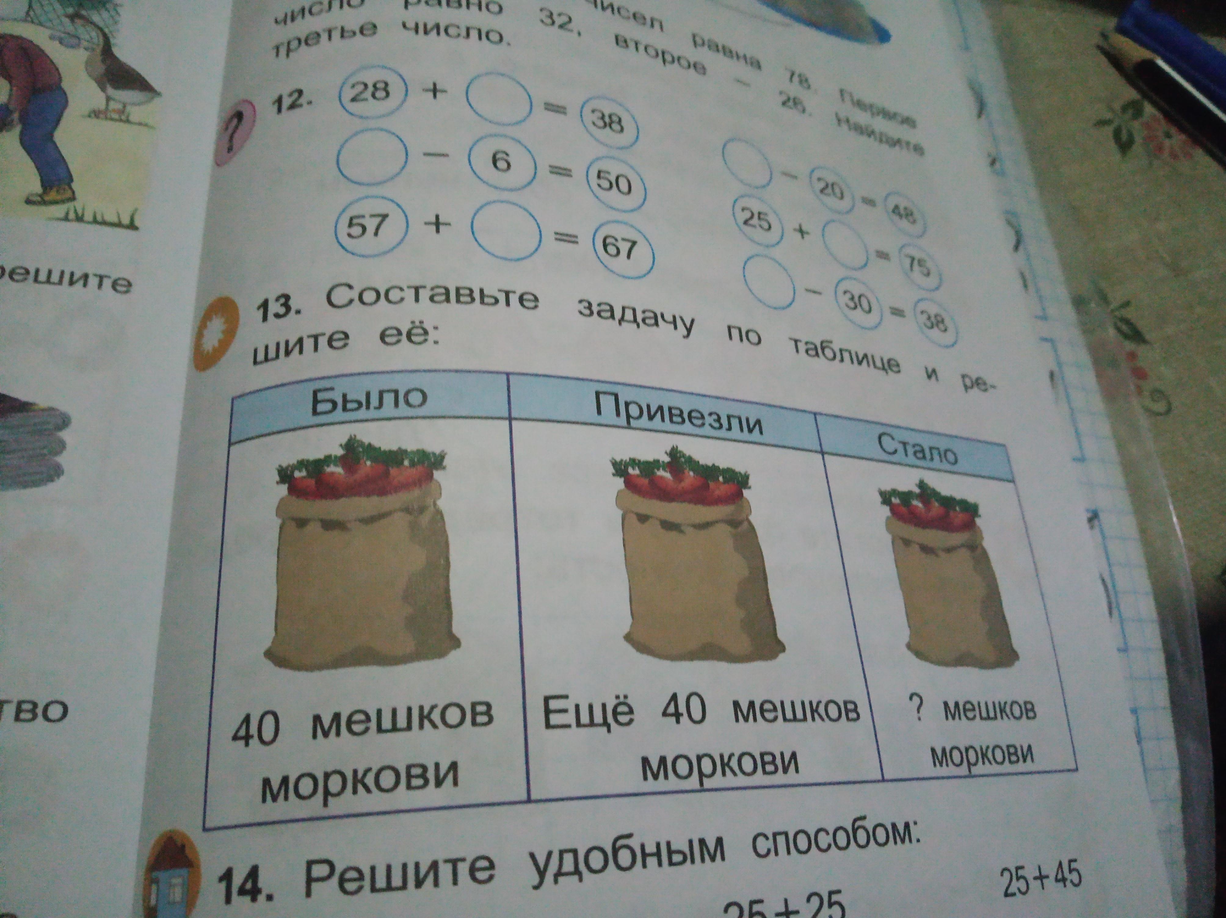 На складе было 40 мешков морковки. Вскоре привезли ещё 40 мешков. Сколько мешков стало?