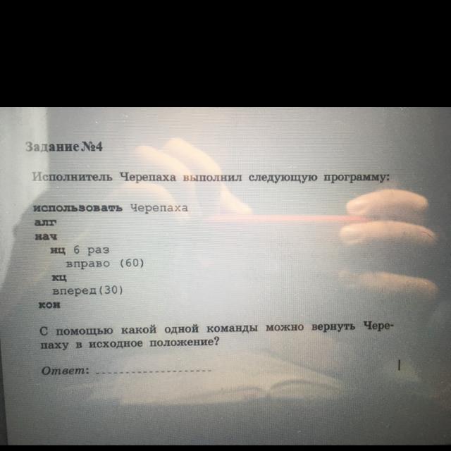 !!!!с помощью какой одной команды можно вернуть Черепаху в исходное положение?