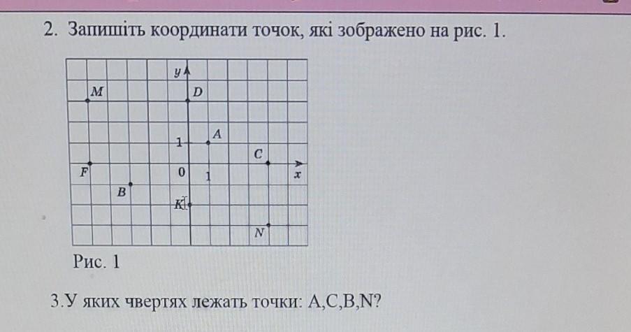 2. С(4;0) N(4;-3) K(0;-2) А(1;1) D(0;3) B(-3;-1) F(-5;0) M(-5; 3) Координаты определяются по (х; у)