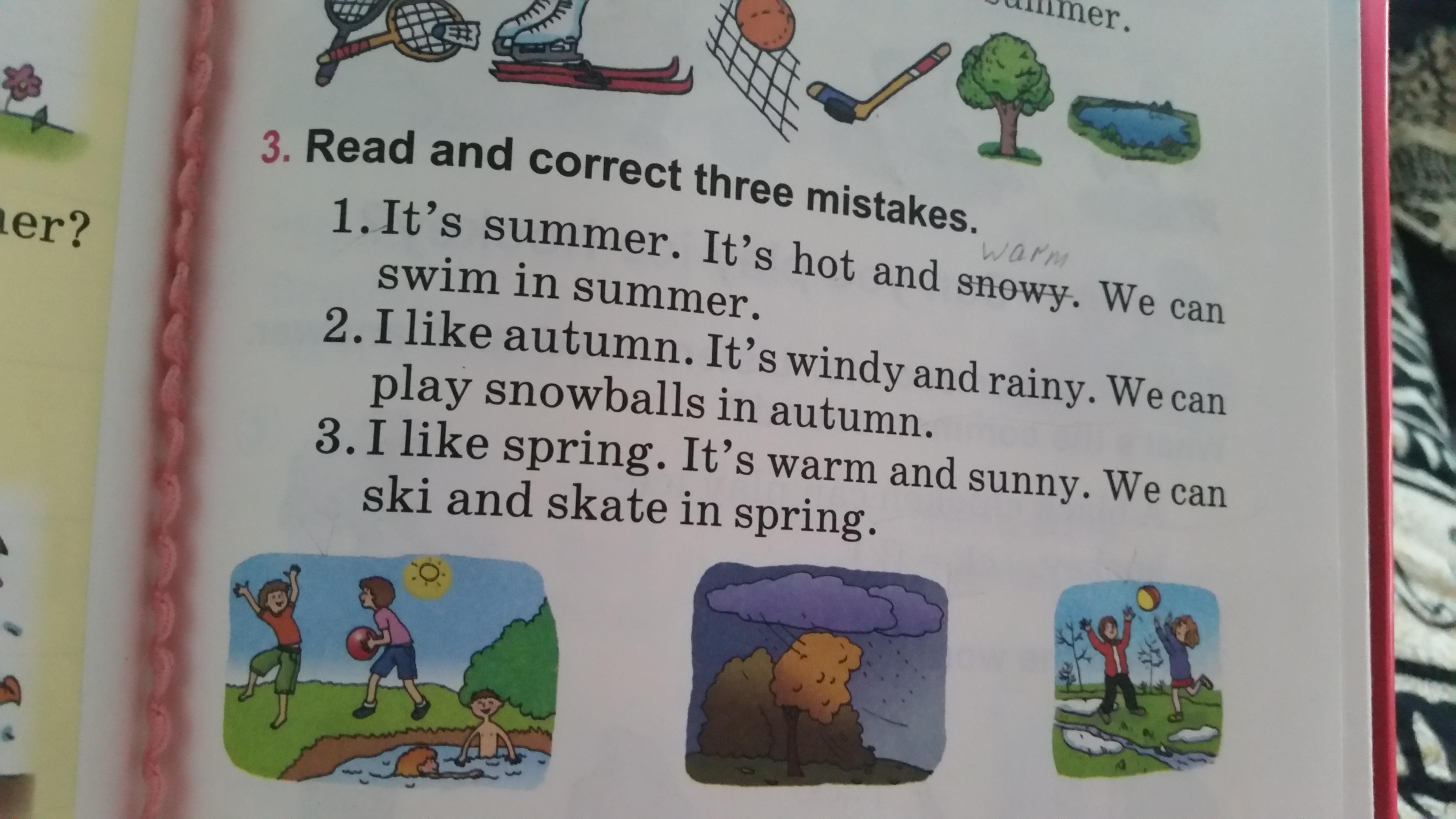 3. I like spring. It's warm and sunny. We can play ball in spring