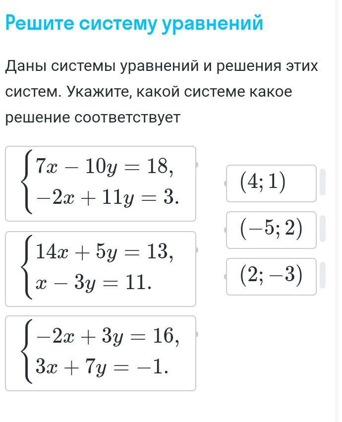 значит второй системе соответствует третье решение, а третьей системе - второе решение.