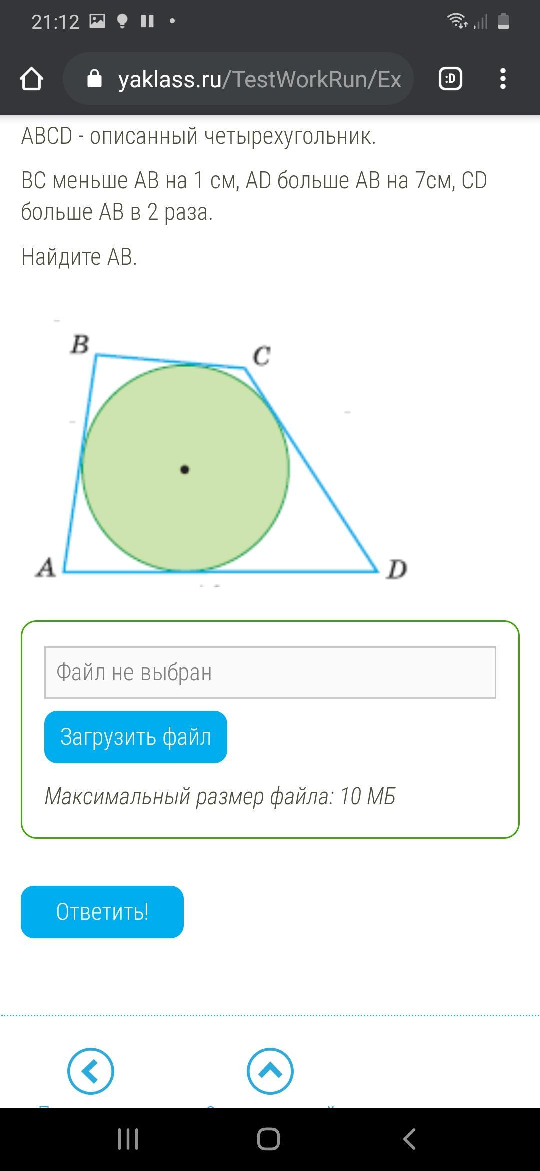 т.к. в четырёхугольник можно вписать окружность, то AB+CD=BC+AD