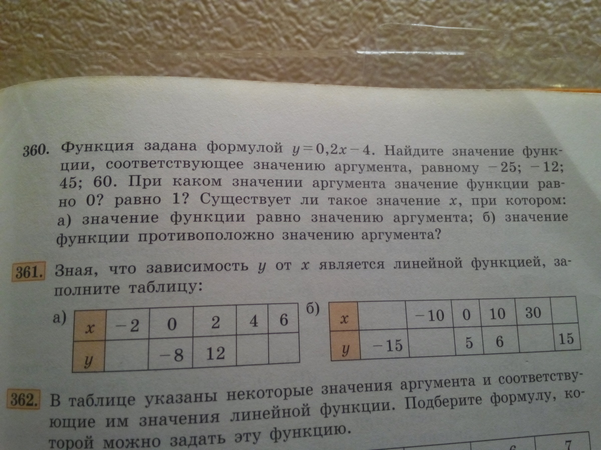 н. 360. кроме решения, желательно объяснить, что значит "значение функции, аргумента"?