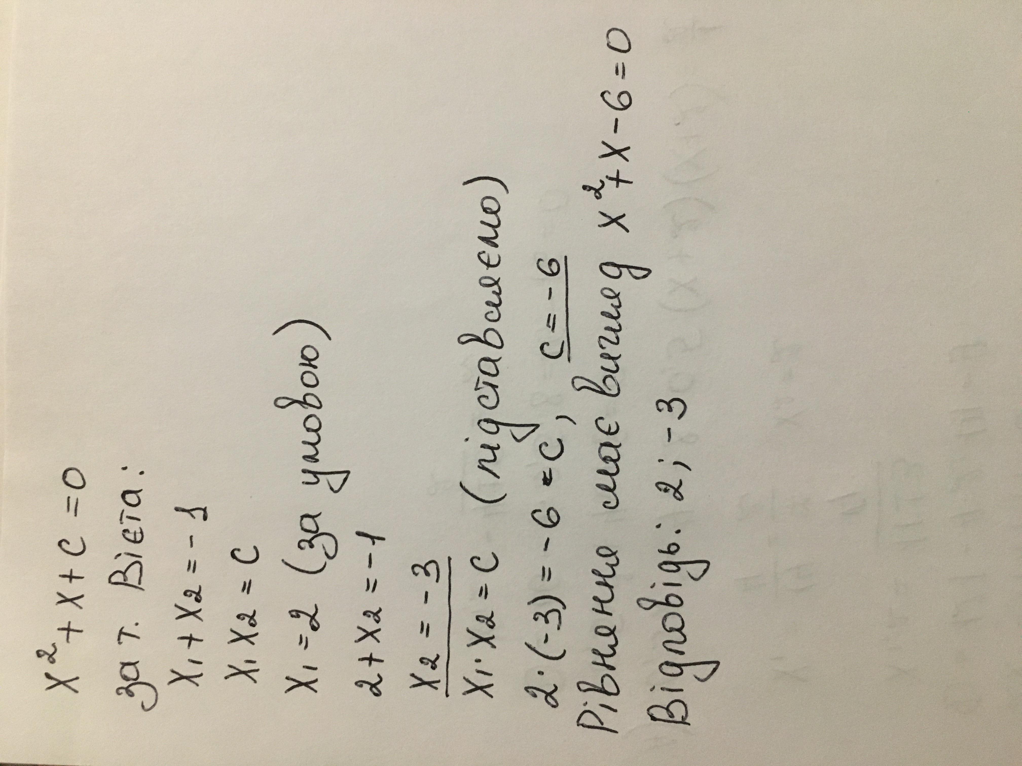 Один з коренів рівняння х2 + х + с = 0 дорівнює 2. Знайти коефіцієнт с і другий корінь рівняння.