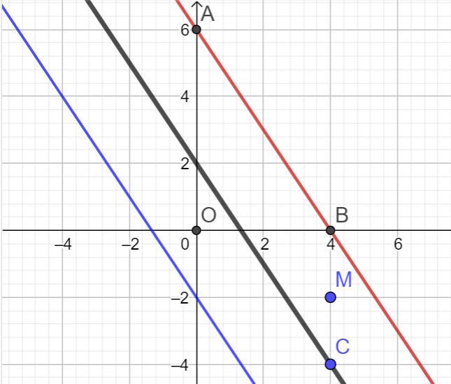 2) Найдём разность координат по у между точкой М и заданной прямой при х = 4 (как у точки М).