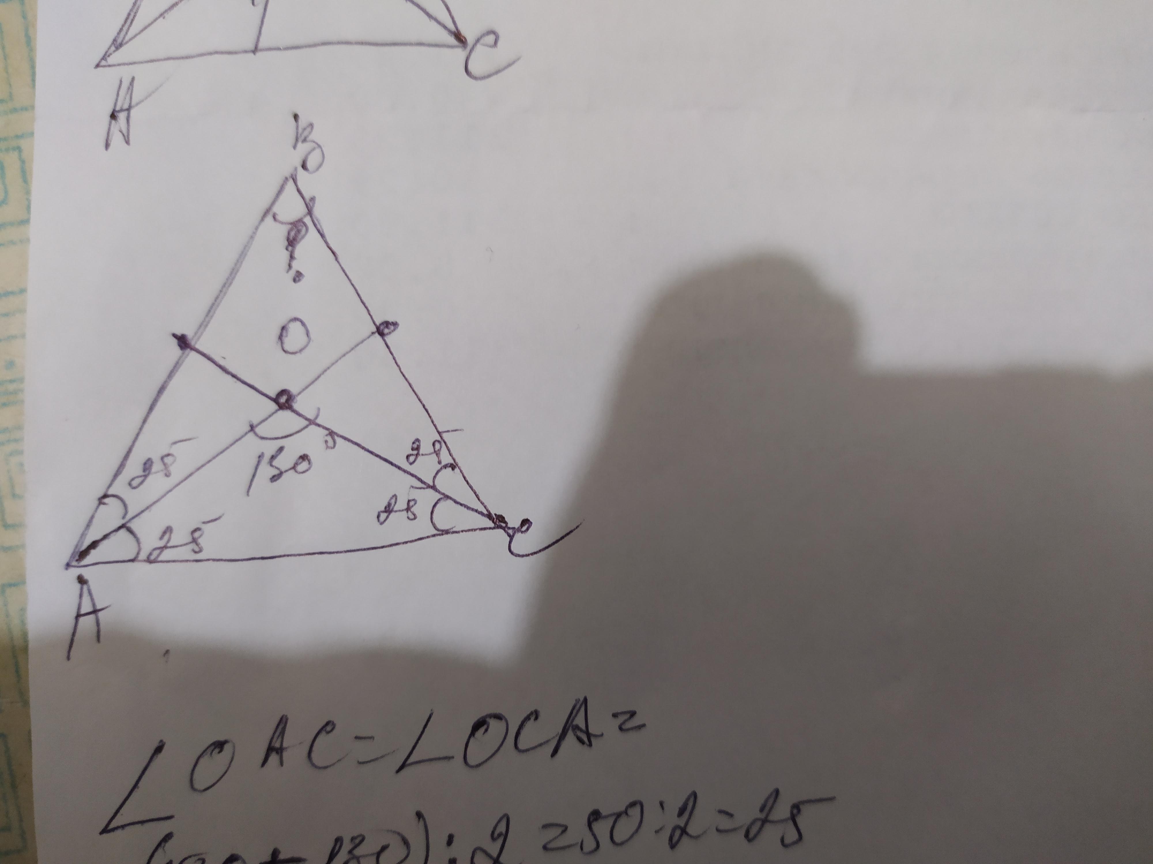Объяснение: рассмотрим ∆АОС. Он тоже является равнобедренным, поскольку биссектрисы проведены из равных углов. Теперь вычислим углы ОАС и ОСА. Биссектрисы углов А и С