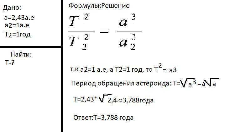 Для того, чтобы решить это задание мы воспользуемся третьим законом Кеплера. Решение я прикреплю (см.файл).