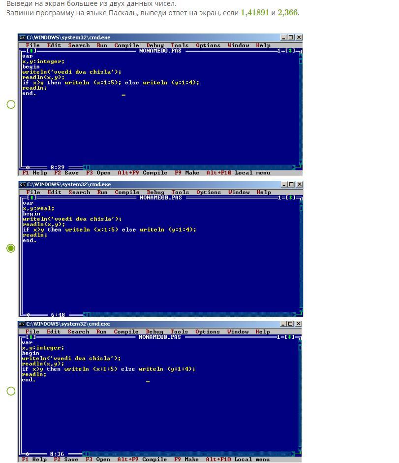 Паскаль.Выведи на экран большее из двух данных чисел.