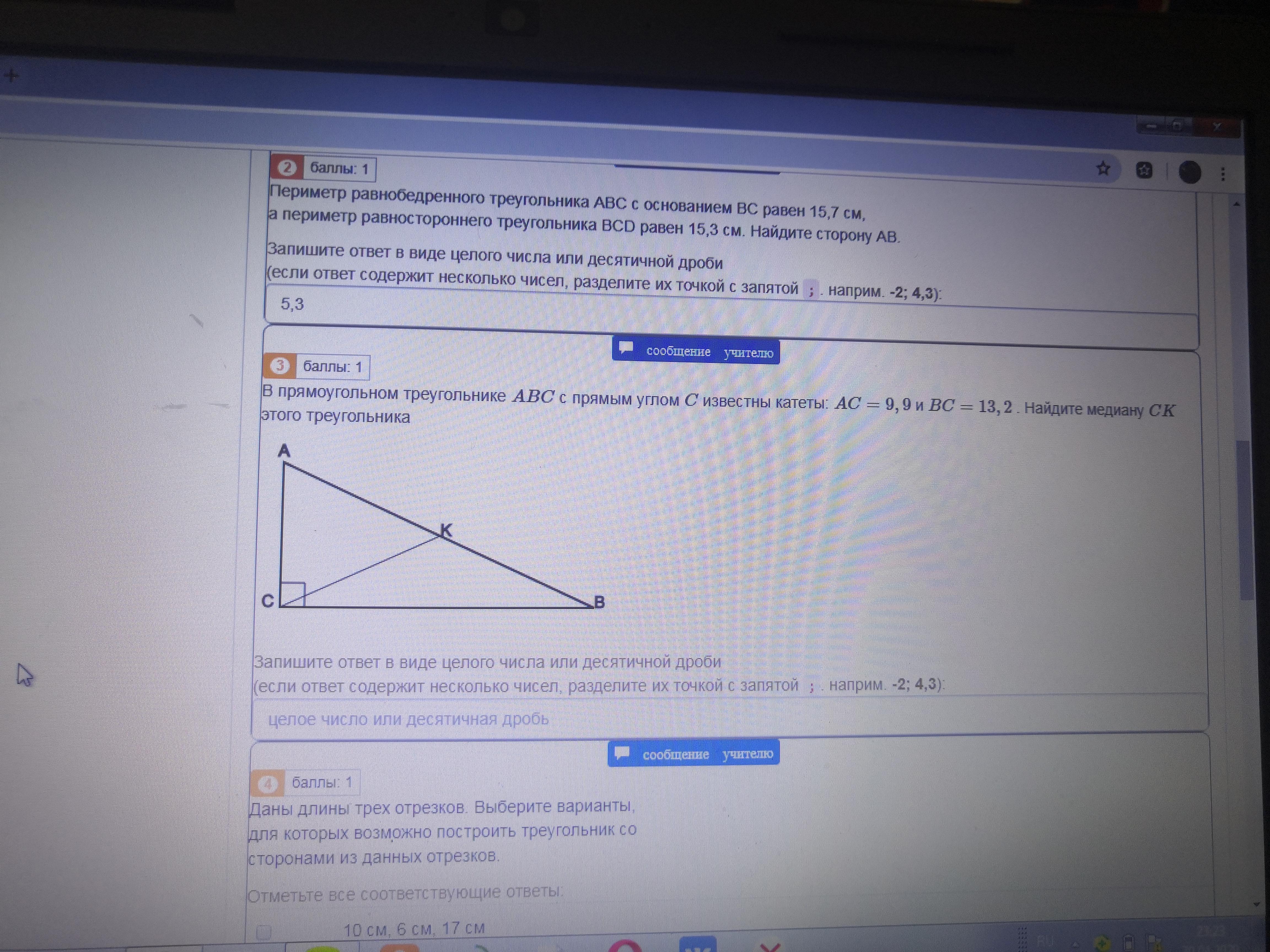 Медиана в прямоугольном треугольнике, проведенная к гипотенузе, равна половине гипотенузы, следовательно: