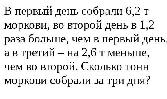 - 3) (6,2 + 7,44) + 4,84 = 18,48 (т). - Собрали тонн моркови за III дня.