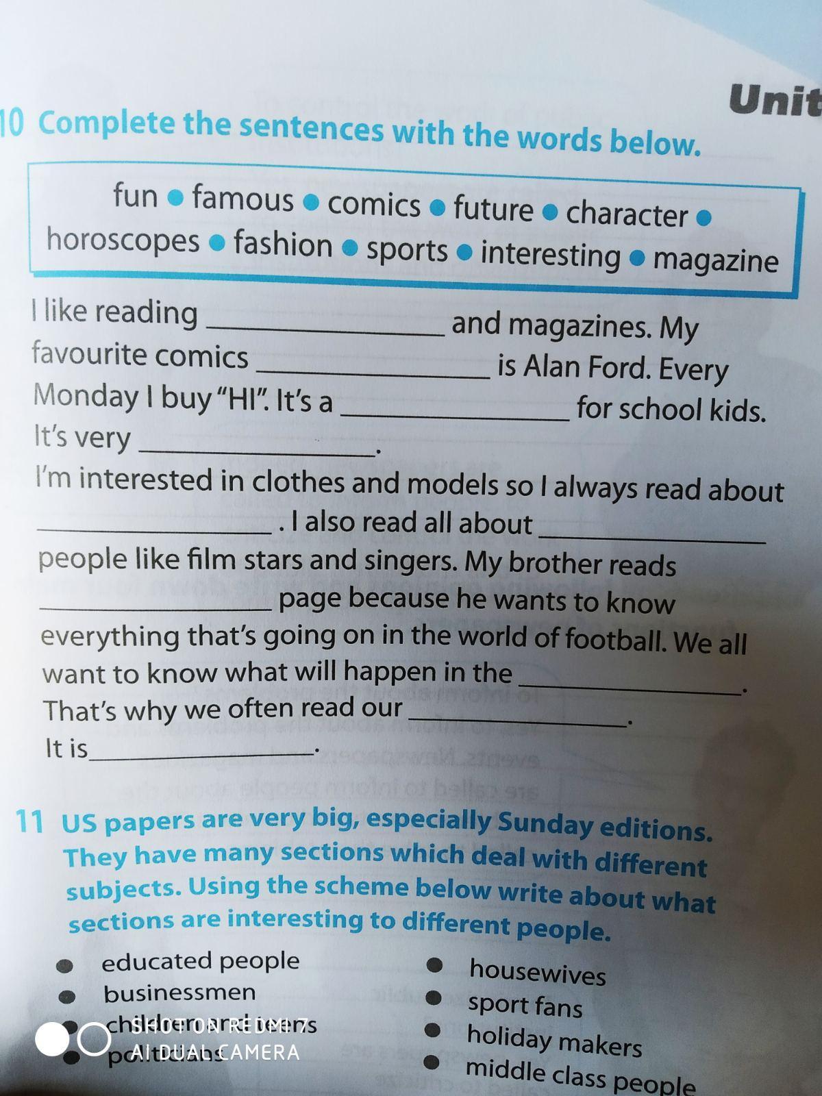 1) comics. 2)character. 3)magazine. 4)fashion. 5)interesting. 6)famous. 7)sports. 8)future. 9)horoscope. 10)fun