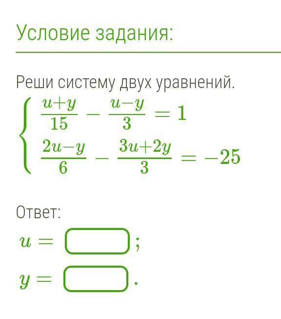 домножим первое уравнение на 15 , второе на 6 и избавимся от знаменателей