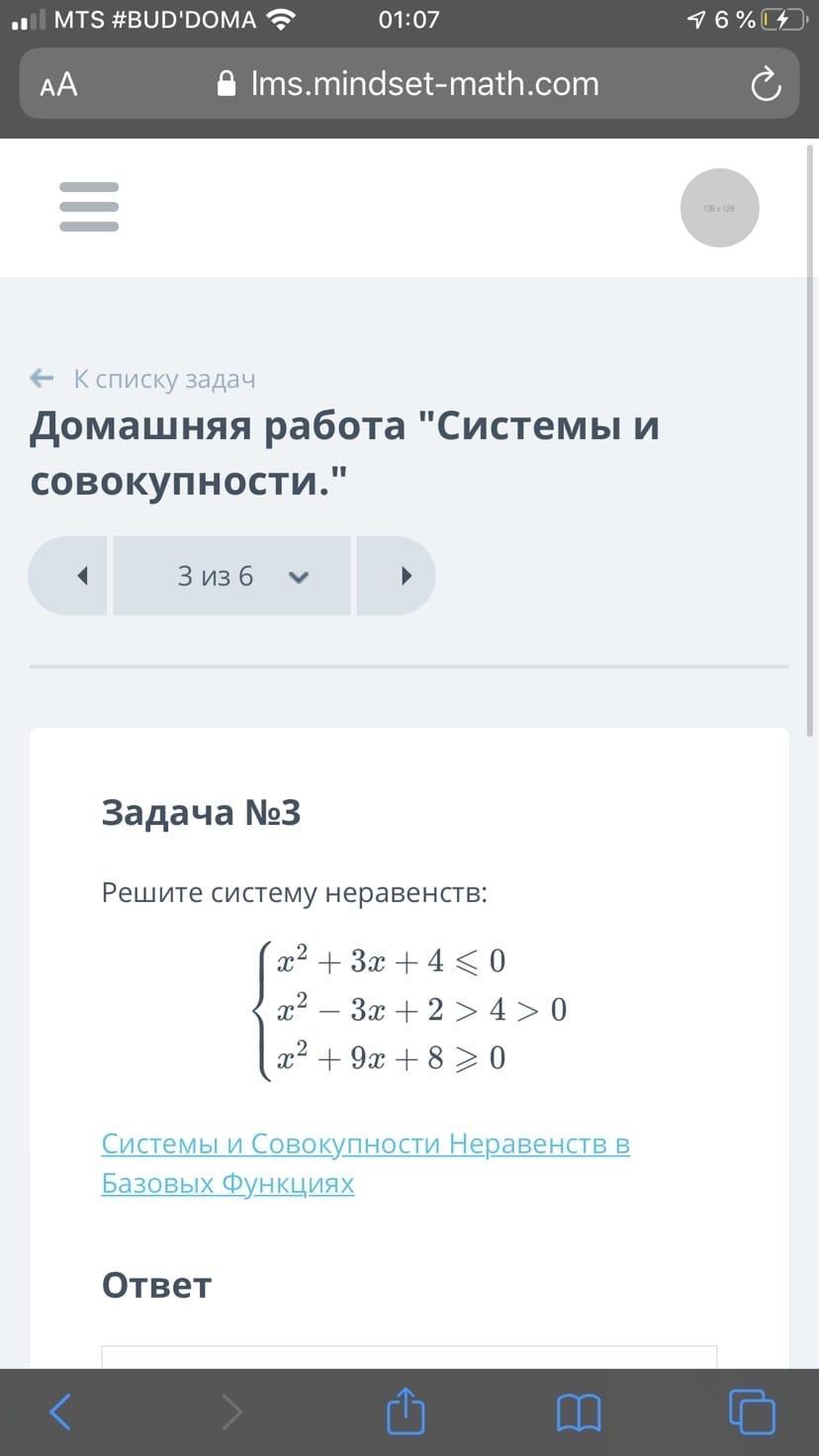 А так как 1-е неравенство не имеет решений, то и данная система неравенств не будет иметь решений.