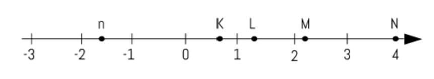 На прямой отмечено число n и точки K, L, M, N. Установите соответствие между числами и отрезками.