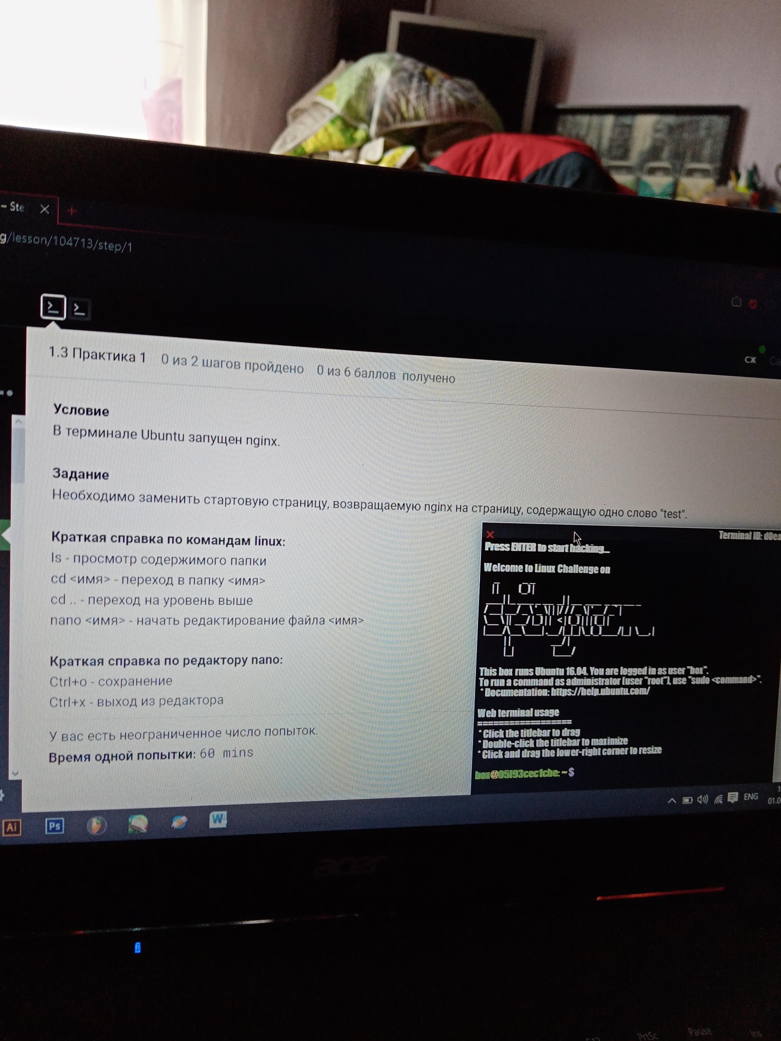 Необходимо заменить стартовую страницу возвращаем nginx на страницу содержащую одно слово test