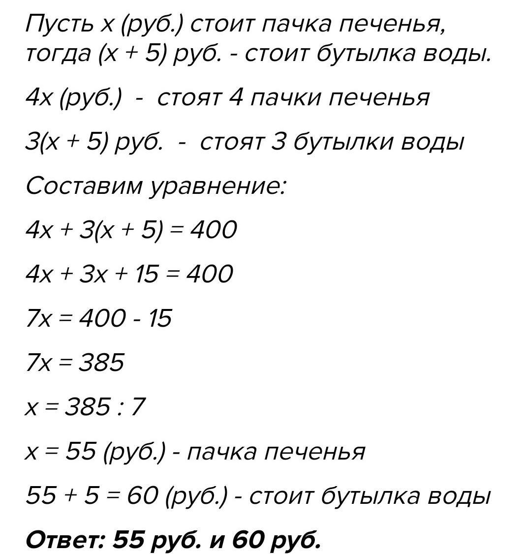 2.За 4 пачки печенья и 3 бутылки минеральной воды заплатили 462 рубля. Пачка