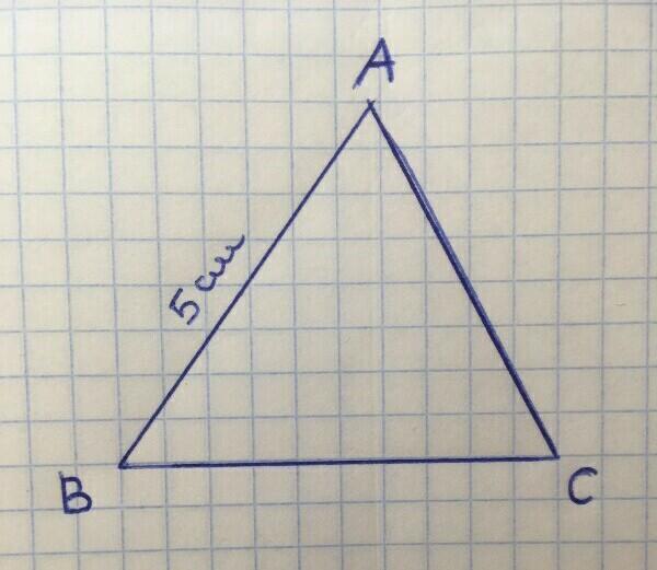 На рисунке представлен △ABC, у которого сторона AB = 5 см.