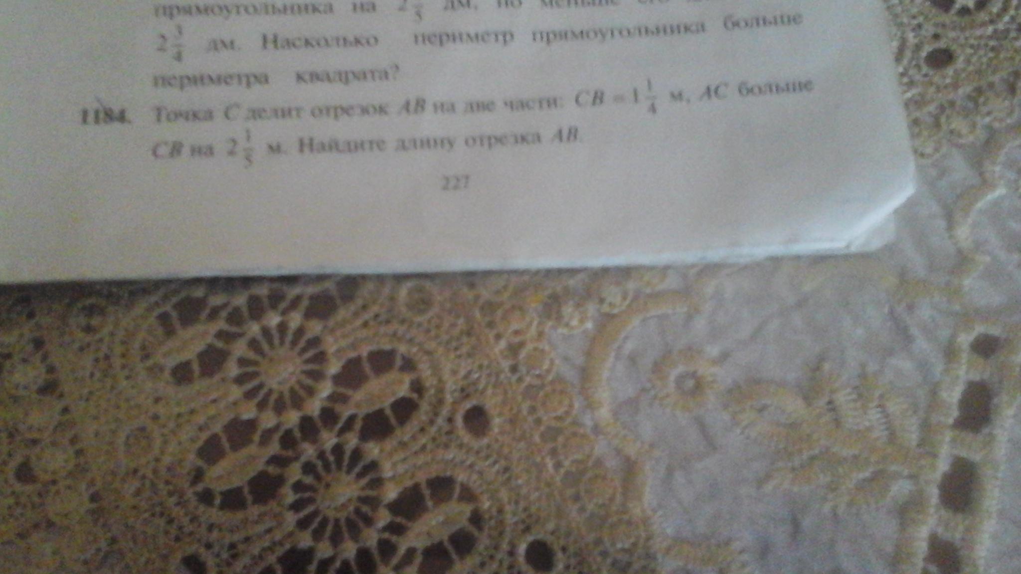 Ребята срочно пожалуйста)),,,,Точка c делит отрезок AB на две части CB 1 1.4 м,CB блльше CB на 2 1.5м. Найдите длину отрезка AB